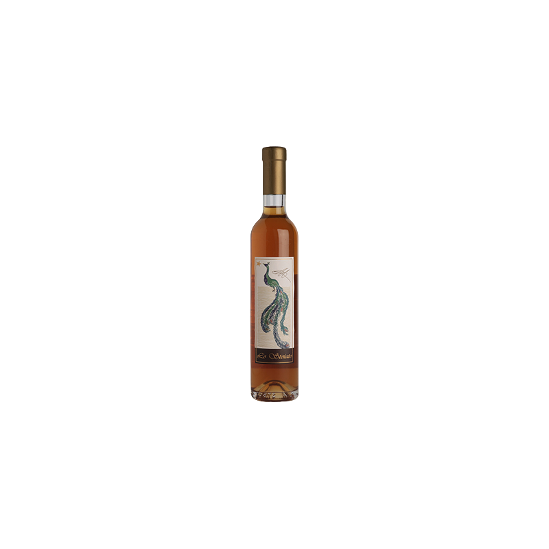 the color is amber, with a beautiful vivacity. Very dense arches on the glass reflect an imposing structure. The olfactory examination presents pleasant aromas of dried fruit, almonds, linked to hints of honey. In the mouth it is characterized by a fat and velvety attack, very intense and persistent, of fine quality. Ample sweet sensations in a well blended whole and in perfect balance.